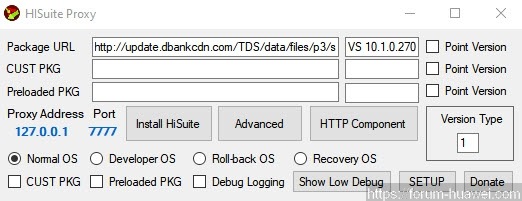 Cliquez sur "SETUP", une fenêtre s'ouvre, il va configurer le Proxy sur votre Hisuite actuel. (dans les paramètres)